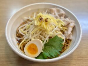 「どて味噌チーズまぜ麺」 大阪B級グルメのどて焼きをアレンジ!どて焼きの味噌をわっしょいの醬油と合わせたまぜ麵です。トッピングは豚バラ肉、大葉、煮卵半玉と茹でたモヤシの上にチーズを炙りました。是非ご賞味ください!! ニンニクは入っています。… もっと読む »