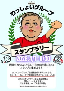 わっしょいグループ スタンプラリー開催! ラーメンもカレーも楽しみ尽くせ!わっしょいグループ全店を巡るスタンプラリーがスタートします! 開催期間:2026年4月1日(水)~6月30日(火) 期間中、各店舗でスタンプを集めて豪華限定グッズをG… もっと読む »