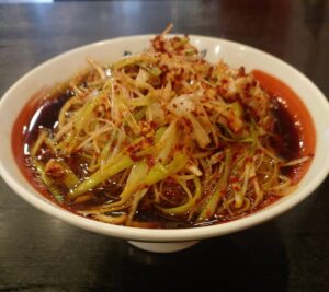 「団長さんのネギら~めん」 白ネギを1本を全て白髪ネギにして唐辛子とニンニク、コロコロチャーシューを混ぜて麺の上にドカンっと乗せ、その上から熱したゴマ油をかけてネギ、唐辛子、ニンニクの香りを出した1杯です!唐辛子を使っていますが少し甘めのス… もっと読む »