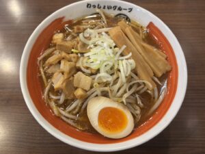 「黒毛和牛カレーラーメン」 黒毛和牛シリーズ最新弾!独自のブレンドと製法で作り上げた純カレーを使用し独特の風味とコクを出したスープとわっしょい自慢の極上たまり醤油、黒毛和牛の旨味と甘みをあわせました。 ニンニクは入っていません。調整可能です… もっと読む »