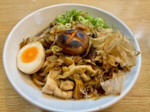 「旨出汁きのこラーメン」 3種のきのこを使い、きのこの出汁が効いた最高の1杯!醤油を塗り炙ったしいたけを真ん中に乗せました。ニンニクなしでもガツン!と食べられる1杯です。もちろんニンニクを入れても美味しいですよ~♪ にんにくは入っていません… もっと読む »