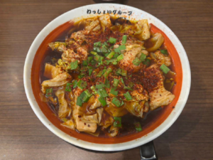 麺屋わっしょい 「わっしょい火鍋」 中国の伝統的な鍋料理【火鍋】をラーメン風にアレンジ!ホルモンの甘さと唐辛子の辛さがベストマッチ。 是非、わっしょいでHOTな春を感じてください! にんにくは入っていません。調整可能です。 1170円(税込… もっと読む »