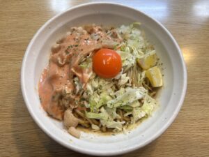 麺屋わっしょい 「焦がし醤油バターまぜ麺」 香ばしく軽く焦がした醤油の芳醇な香りが立ち上りもちもちとした太麺にしっかりと絡む一杯。熱々の麺の上でゆっくり溶けるバターが醤油のコクにまろやかな深みを添え、ひと口ごとに食欲を刺激します。 ニンニク… もっと読む »