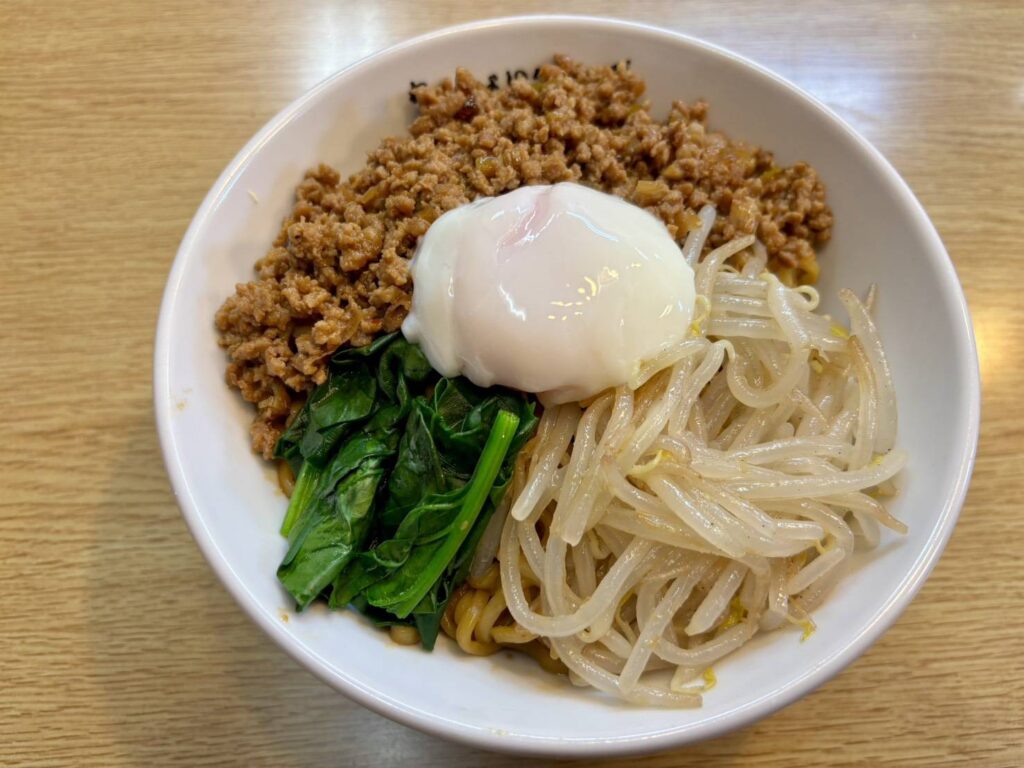 特注ちぢれ麺で肉味噌とよく絡みます!